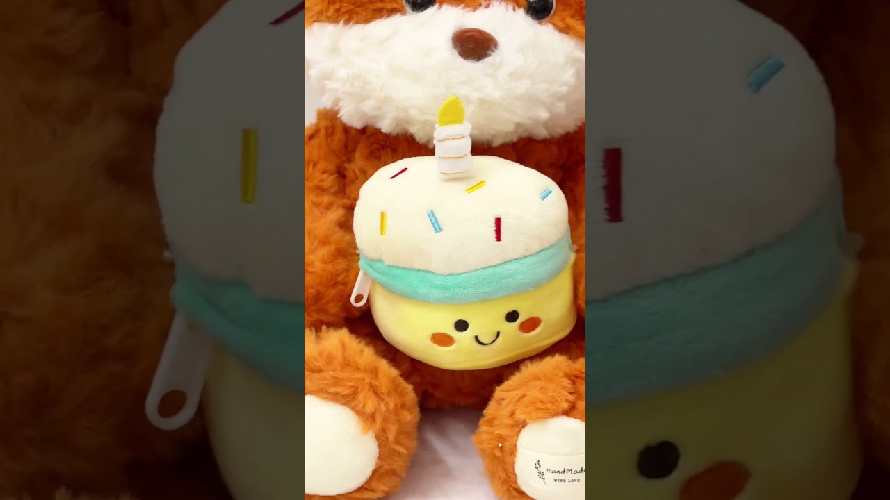 Bộ Thú Bông Ôm Bánh Sinh Nhật có khóa kéo thích hợp để đựng đồ bên trong