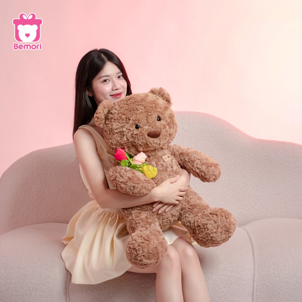 Gấu Bông Teddy Cầm Cành Hoa Hồng