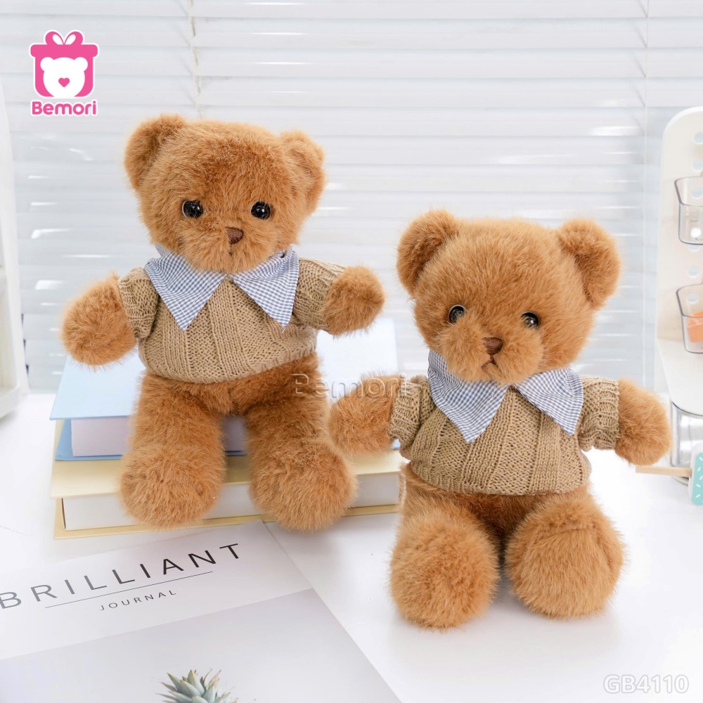 • Gấu Bông Áo Len Nâu Cổ Bẻ